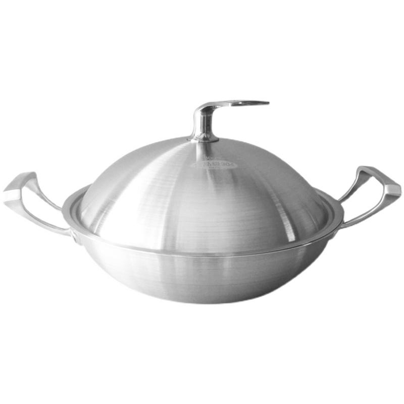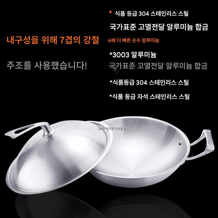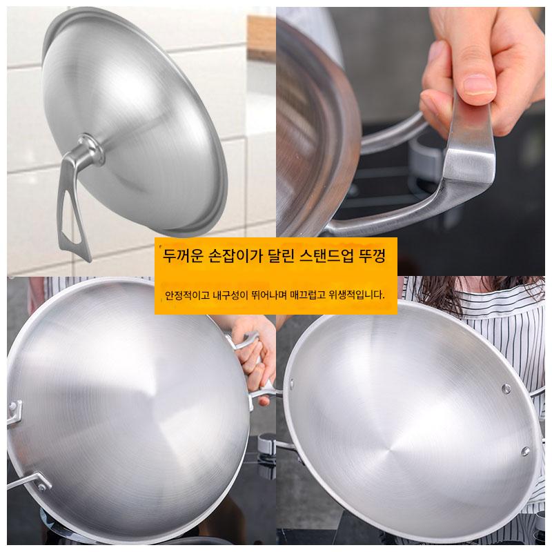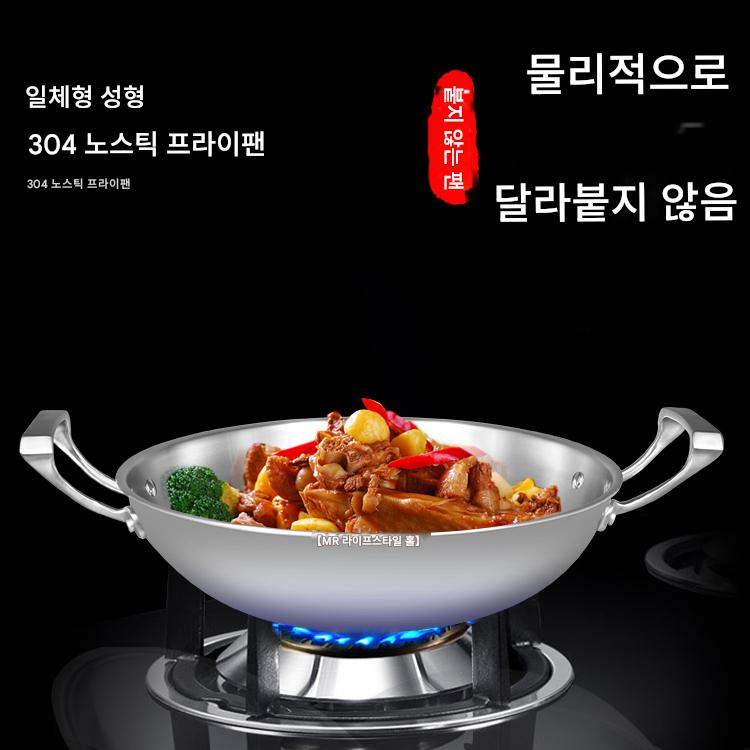 304 독일산 스테인리스 둥근바닥 프라이팬 노스틱팬 더블 이어 포인트 바닥 프라이팬 가정용 삼각대 무연 무코팅