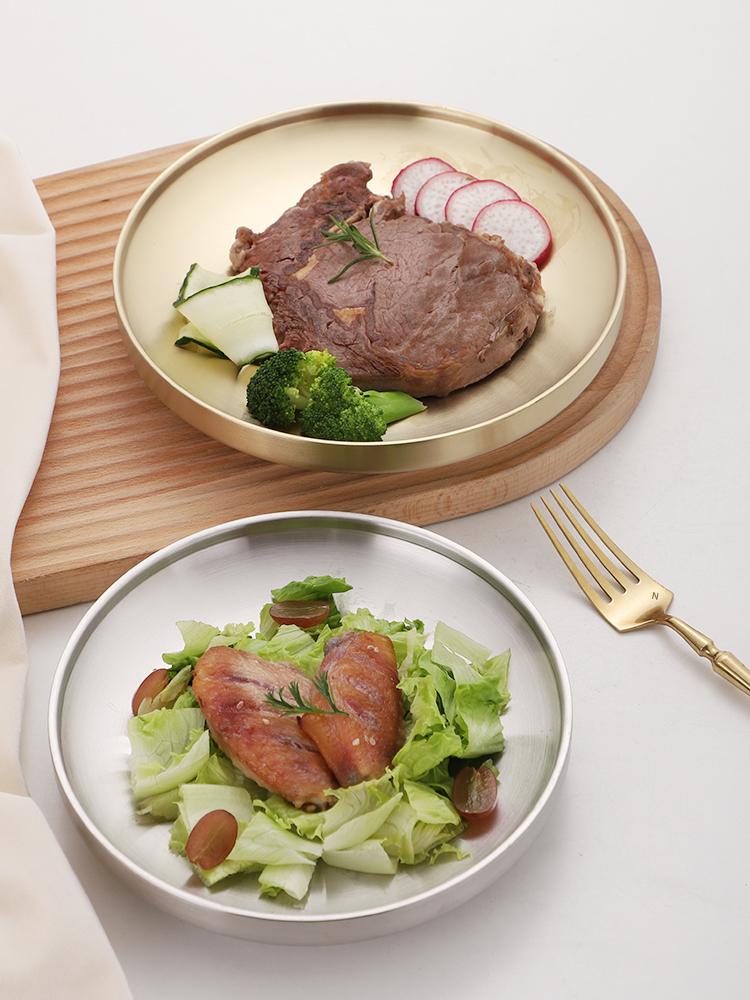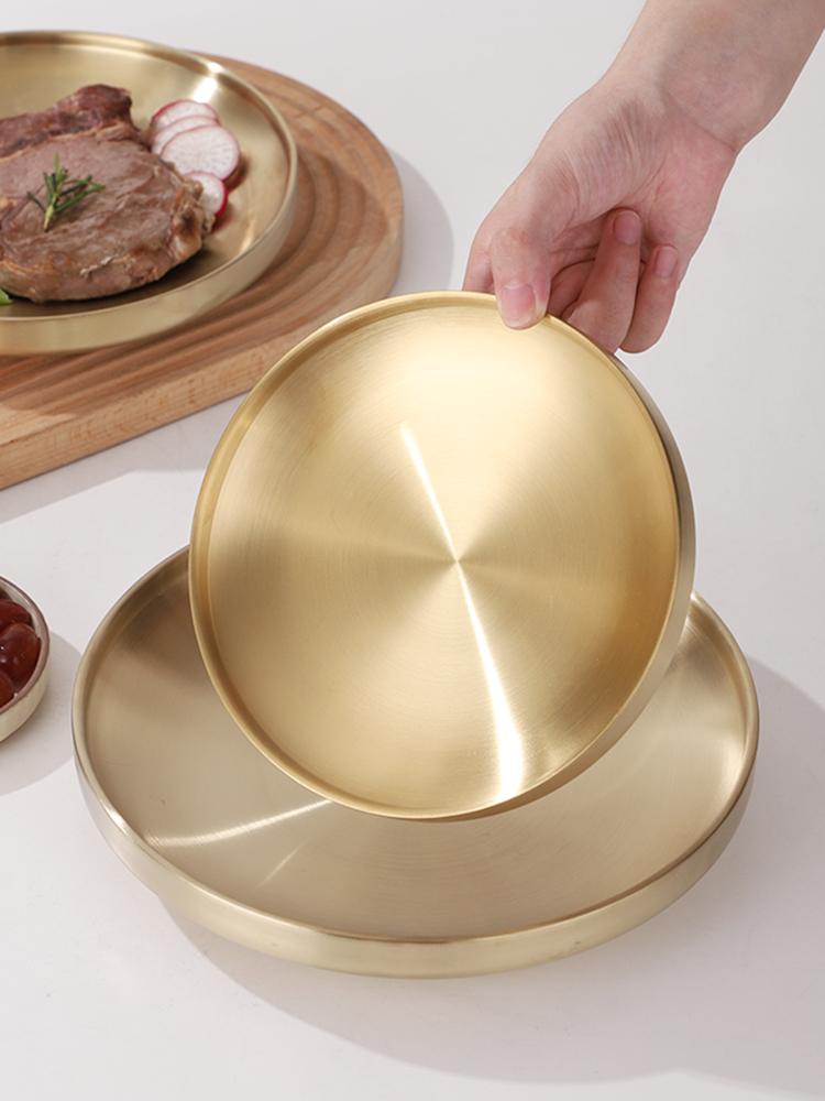 304 스테인리스 스틸 초두꺼운 무광 이중 레이어 골드 원형 트레이 상업용 레스토랑 크리에이티브 한국식 바베큐 레스토랑 원형 저녁 접시