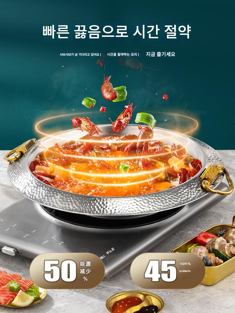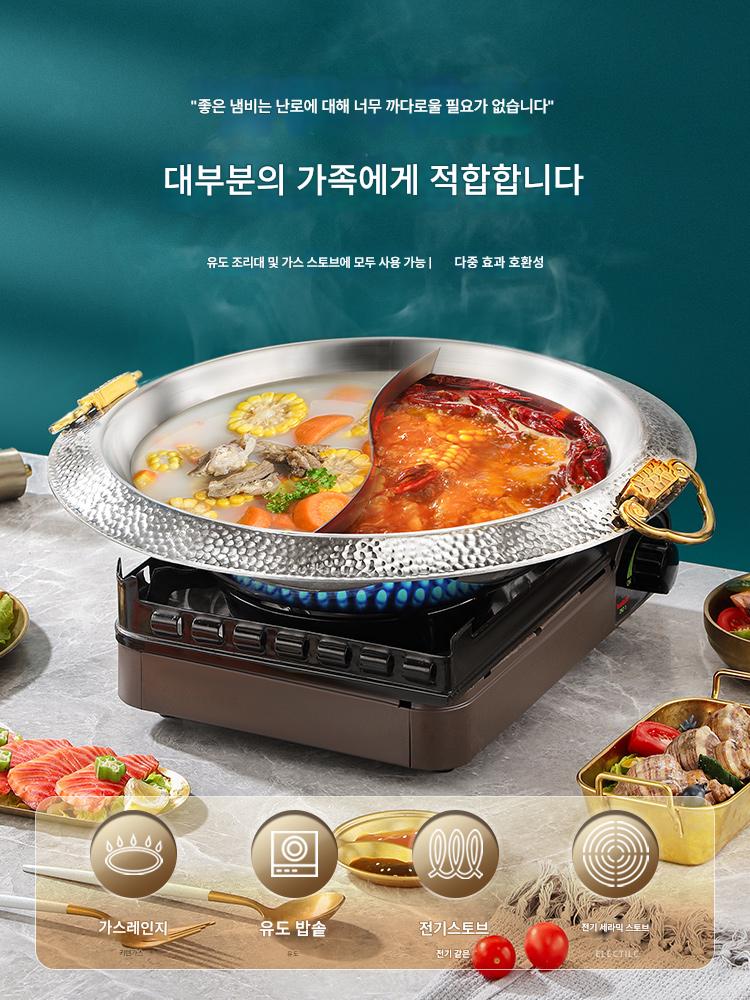 304 특대 두께 스테인리스 스틸 손잡이 수프 냄비 망치 패턴 핫팟 가정용 핫팟 냄비 샤부샤부 유도 쿠커 가스 스토브 범용