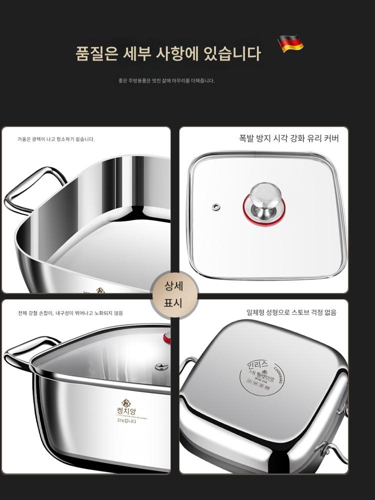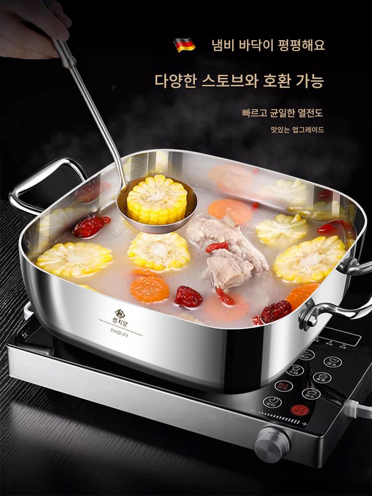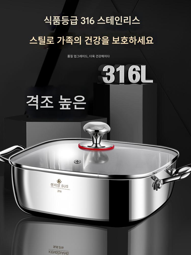 316 스테인리스 스틸 사각 냄비 특대 두께 가정용 수프 냄비 대용량 상업용 냄비 분지 유도 쿠커 특수 냄비