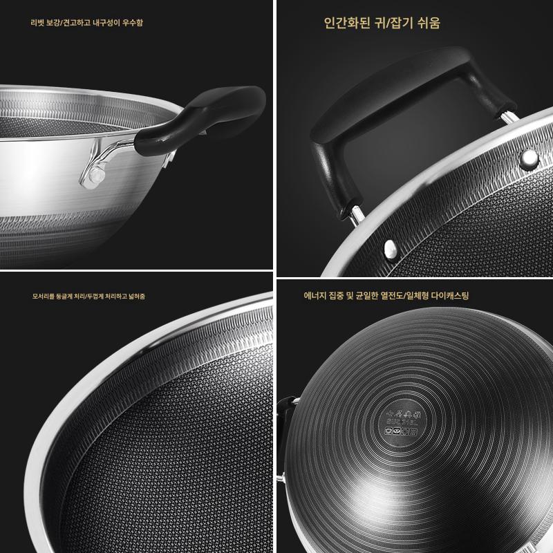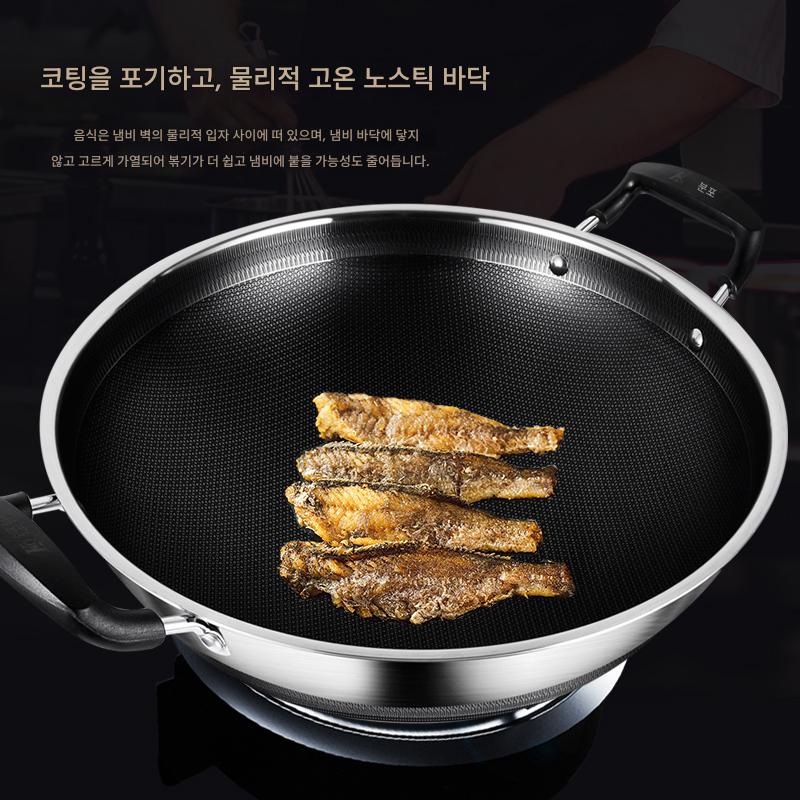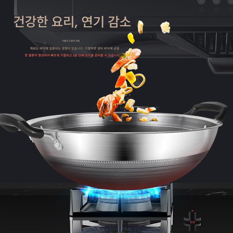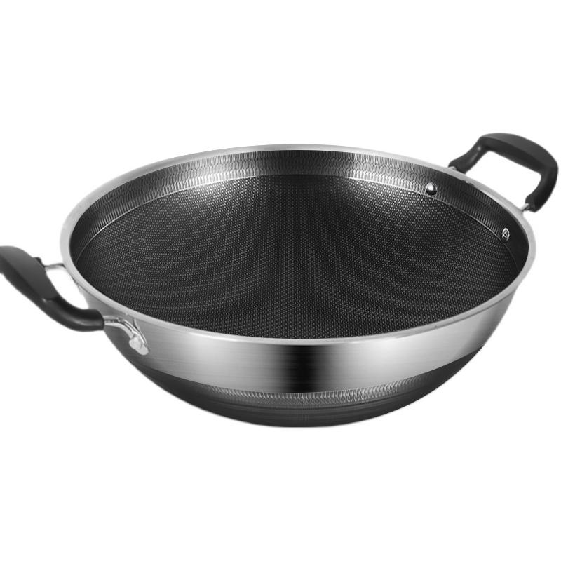 316 스테인리스 스틸 프라이팬 가정용 대형 둥근 바닥 프라이팬 가스 오목 유도 쿠커 특수 이중 귀 노스틱 팬
