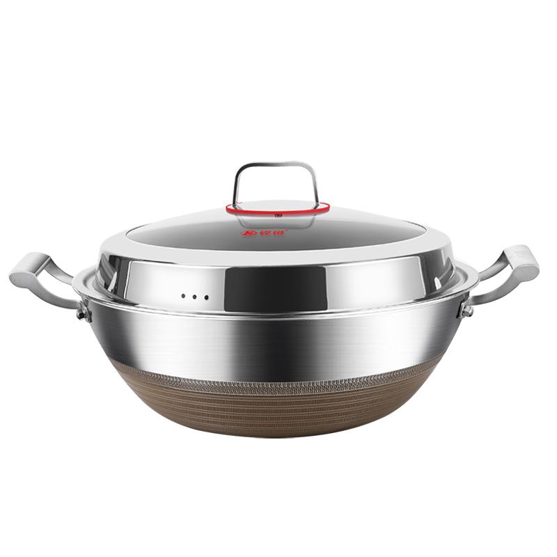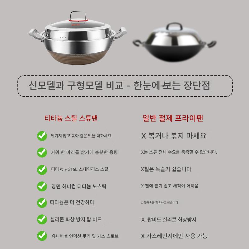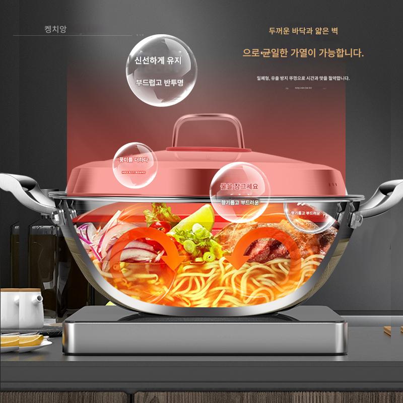 316 스테인리스 스틸 프라이팬 노스틱 팬 가정용 평평한 바닥 초대형 더블 이어 냄비 깊은 프라이팬 가스 스튜 냄비