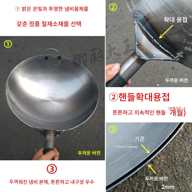 45cm 프라이팬 상업용 단철팬 대형 손잡이 포함 44강철팬 두꺼운 강판 팬 호텔 레스토랑 매점