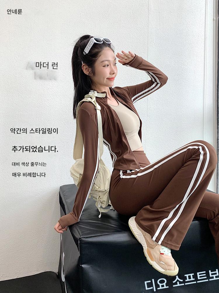 annerun 슬림핏 요가복 여성 레저 러닝 투피스 수트 속건성 트레이닝 스포츠 피트니스 의류