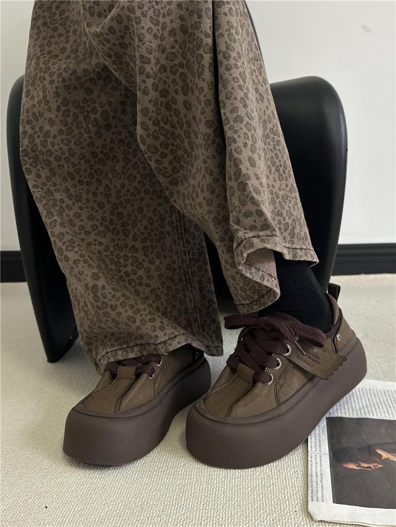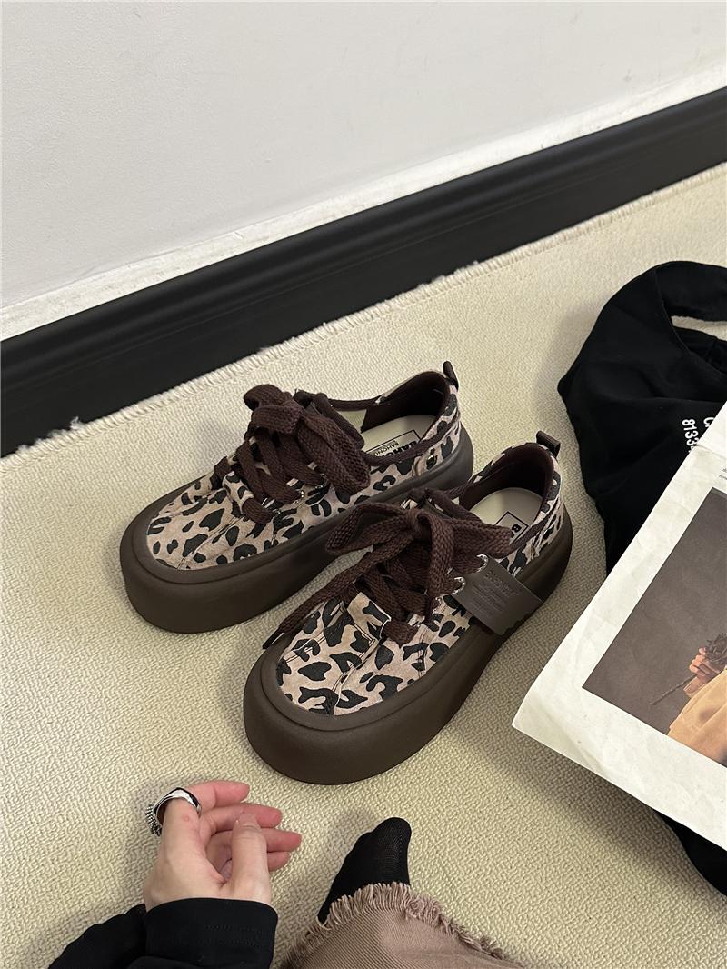 BAHONGLY 레오파드 프린트 빵화 여성용 2025년 봄 두꺼운 밑창 정품 가죽 캐주얼 다용도 스포츠화 트렌드