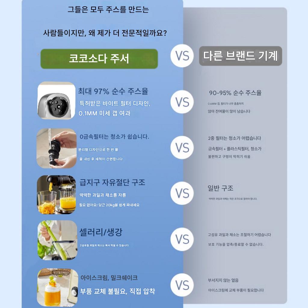 COCOSODA 저속 주서기 주서기 주스 잔여물 분리 가정용 과일 및 채소 소형 자동 슬로우 그라인더 필터 없음