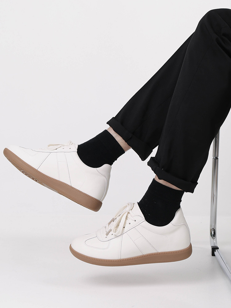 Dexun 신발 남녀 정품 가죽 소가죽 5cm 보이지 않는 키 증가 신발 두꺼운 밑창 커플 캐주얼 흰색 신발 포레스트 검프 신발 7