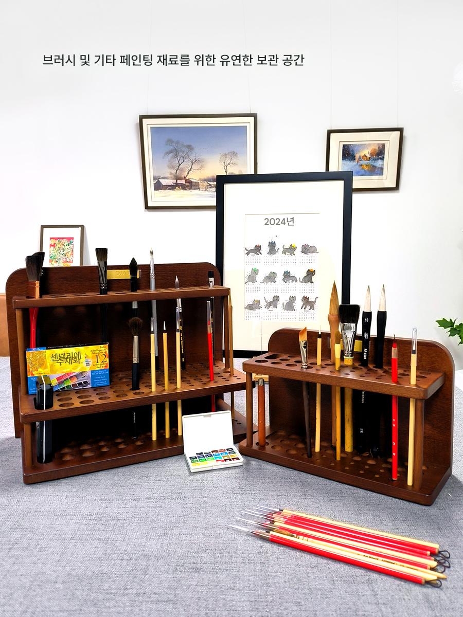 DJAR 견고한 나무 보관용 브러시 브러시 홀더 페인팅 상자 호두 너도밤나무 중국 펜 홀더 크기