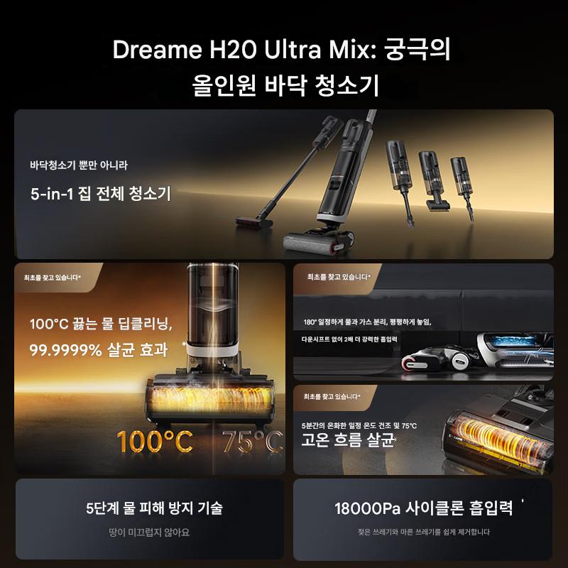 Dreame H20 Ultra Mix H14 듀얼 무선 플랫 온수 바닥 세척 진공 청소기 180도 플랫