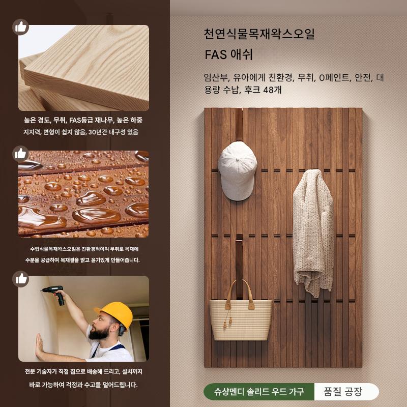 FAS 등급 애쉬 우드 피아노 키 옷걸이 현관 견고한 나무 벽걸이 침실 공간 절약 현관 보관 옷걸이