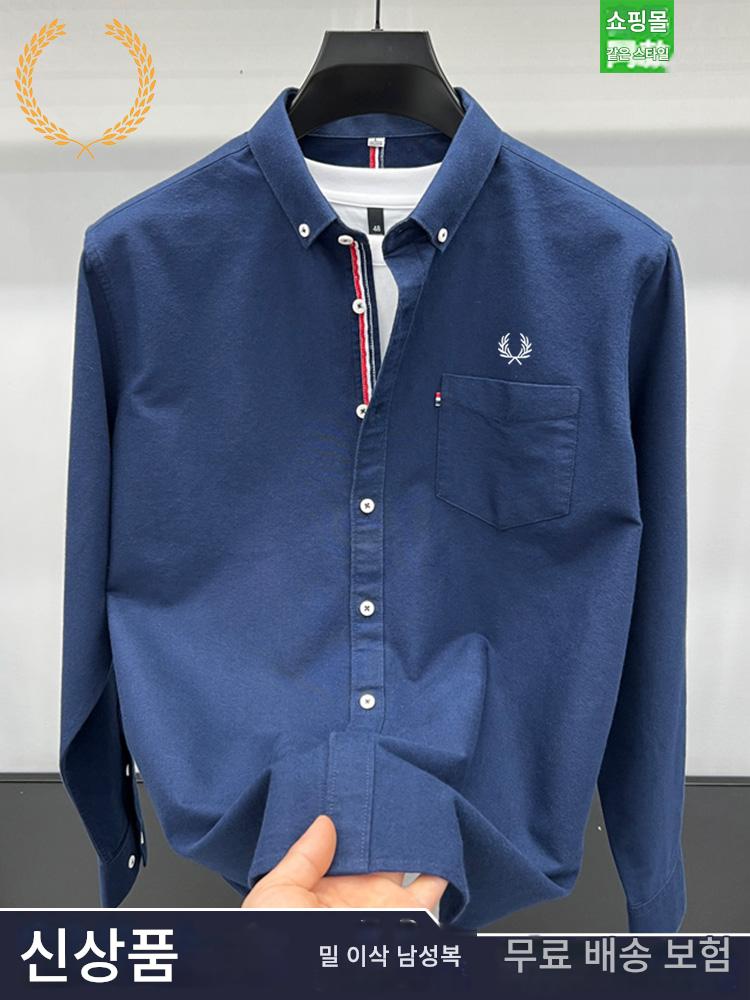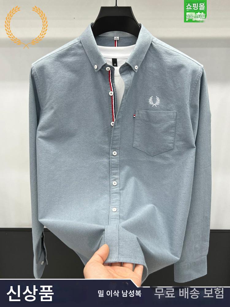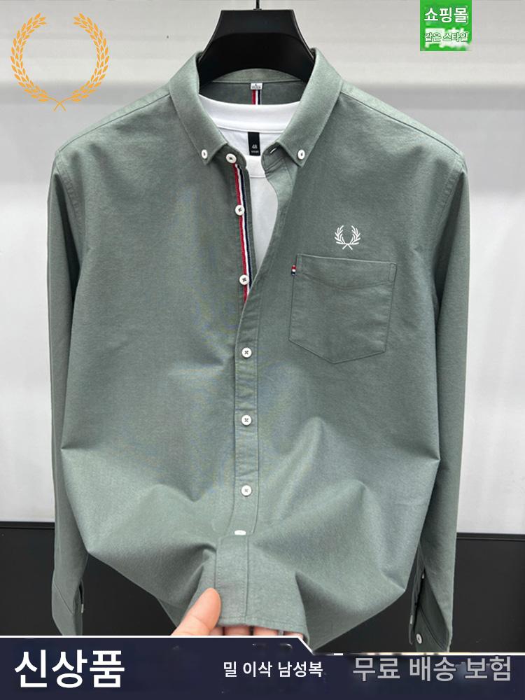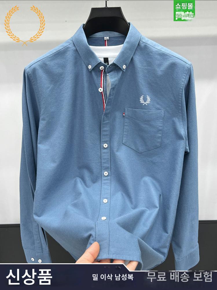 FP 밀 이삭 정품 코튼 긴팔 셔츠 남성 가을 신상 남성 비즈니스 캐주얼 솔리드 컬러 리얼 포켓 인치 셔츠