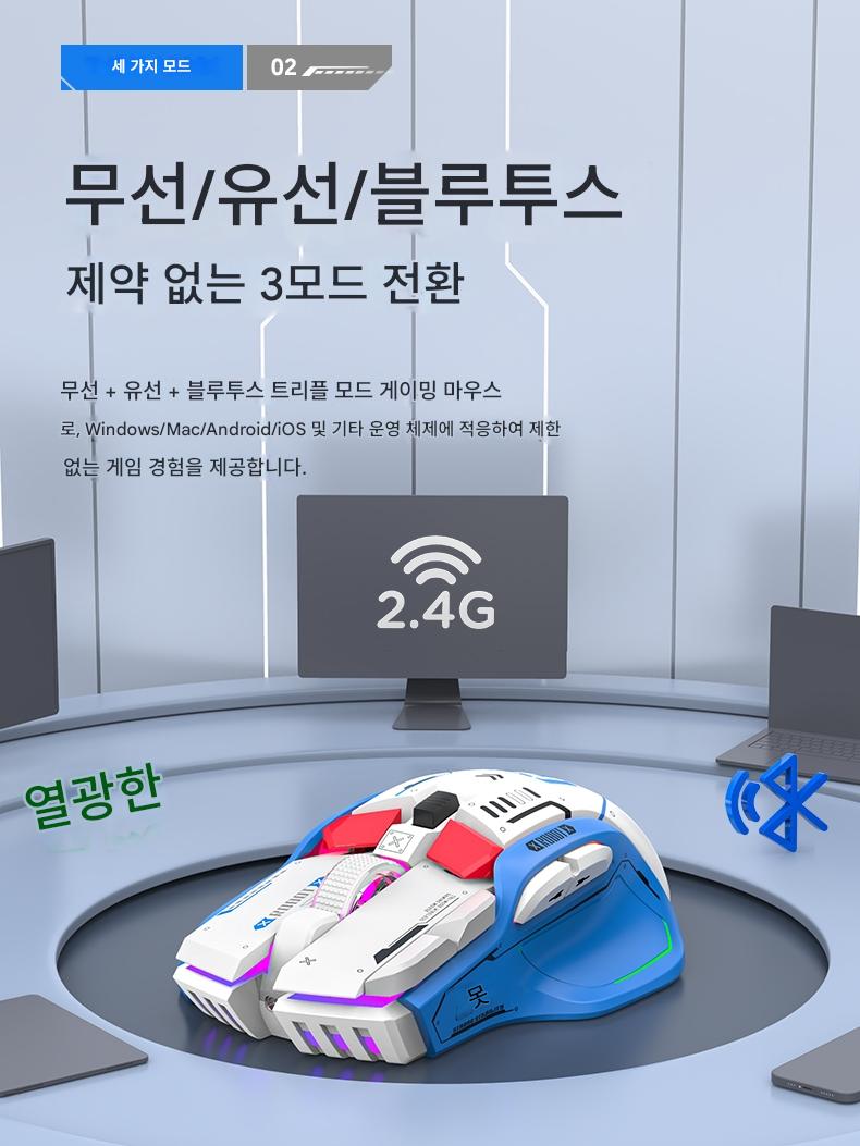 “G6 메카 스타일 3모드 무선 마우스 충전식 블루투스 홈 게임 빛나는 사무실 노트북 데스크탑 컴퓨터”의 첫 상품평을 남겨주세요
