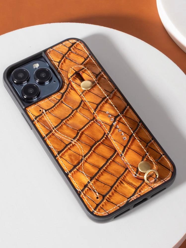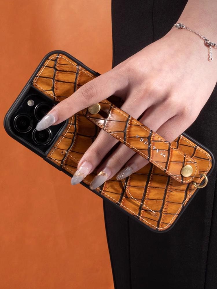 HANATORA Flower Tiger는 Apple 16/15promax 모바일 폰 케이스에 적합합니다. 끈 손목 받침대 정품 가죽 남성 및 여성 14plus/13/12 올인클루시브 낙하 방지 고급 카드