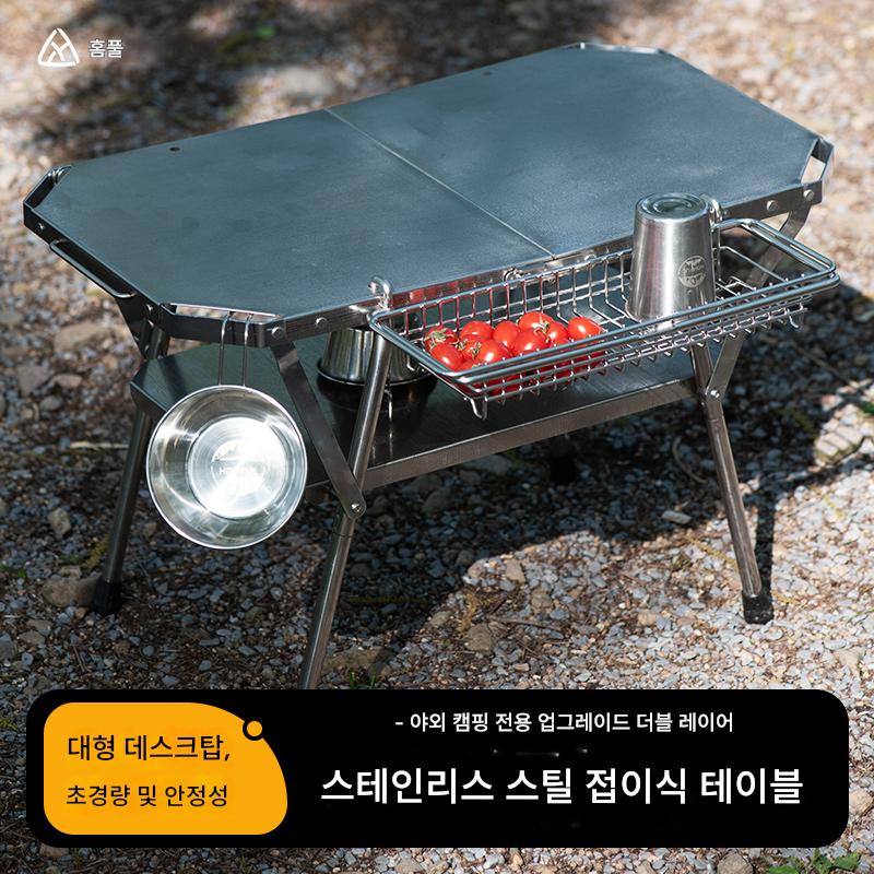 Haofeng 야외 캠핑 접이식 테이블 휴대용 스테인리스 스틸 피크닉 바베큐 장비 IGT 다기능 전술 테이블