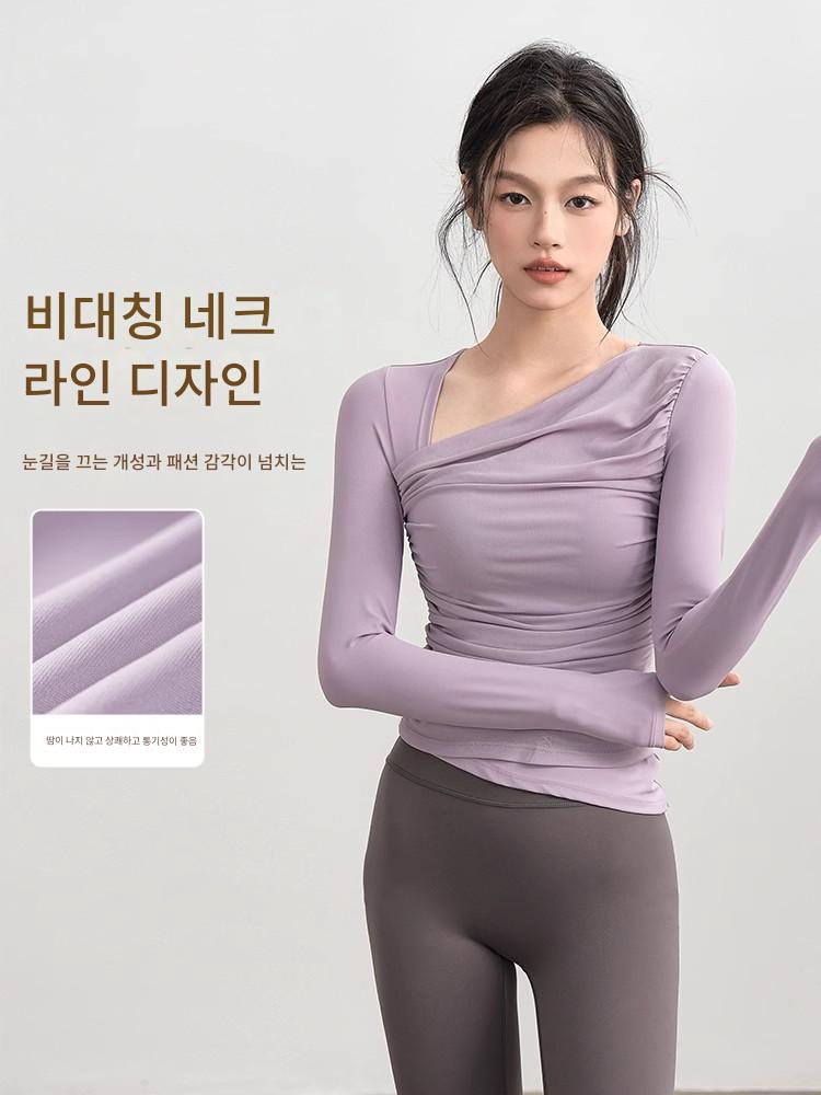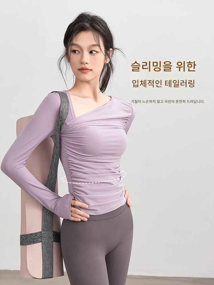 KAYANTY 가을 겨울 풀업 어드밴스드 센스 트레이닝 수트 요가 긴팔 여성 스포츠 상의 가슴 패드 피트니스 의류
