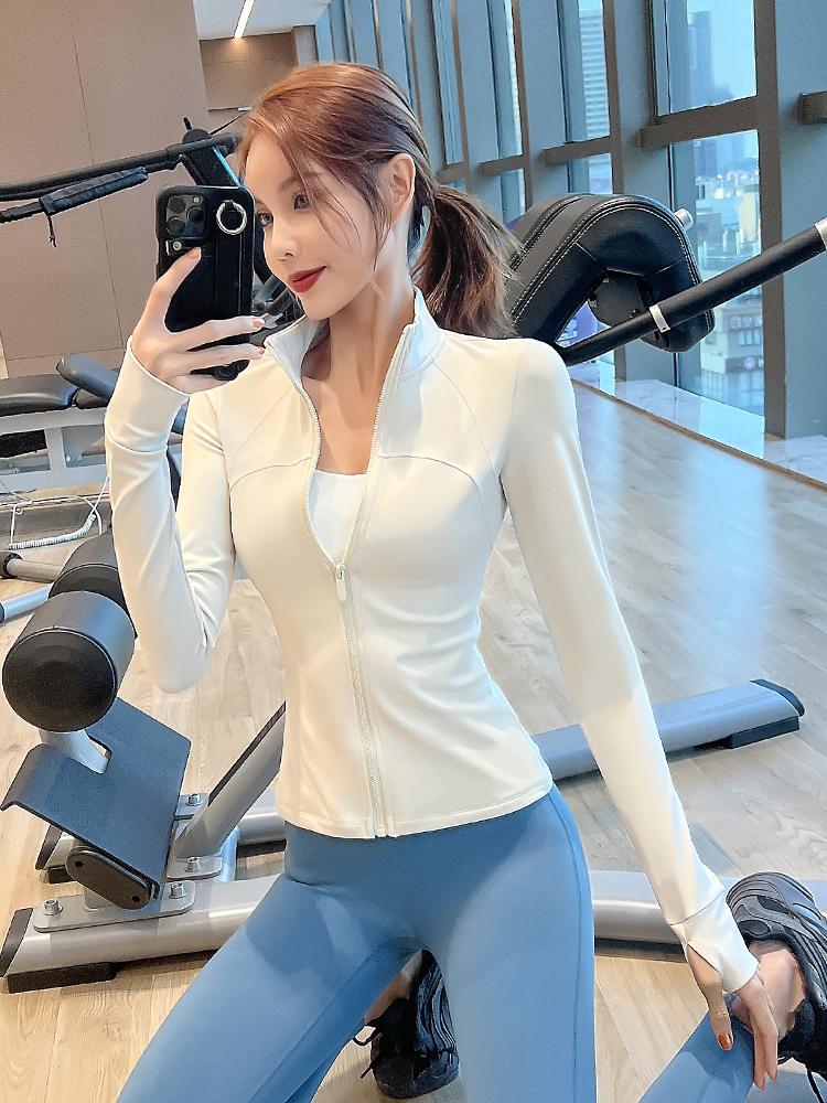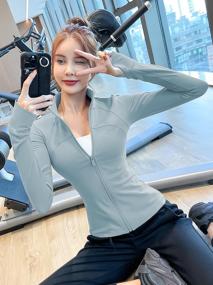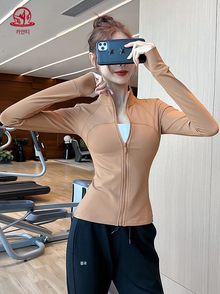 KAYANTY 스탠드 칼라 플러스 벨벳 스포츠 재킷 여성용 긴팔 피트니스 의류 가을과 겨울 야외 전문 모닝 러닝 요가 의류