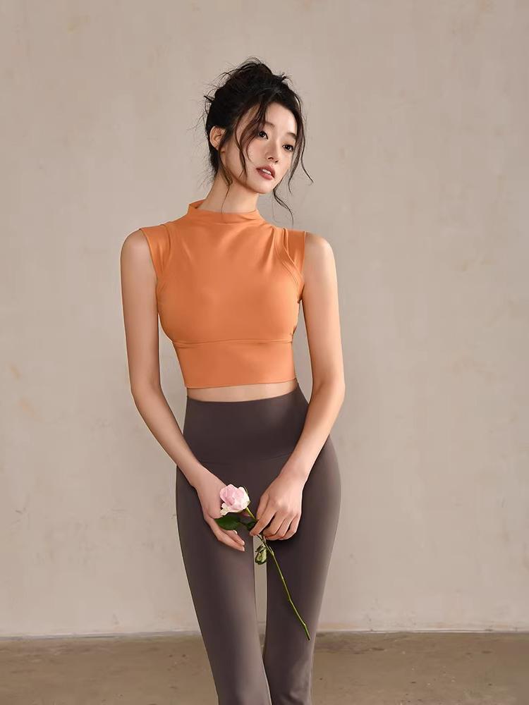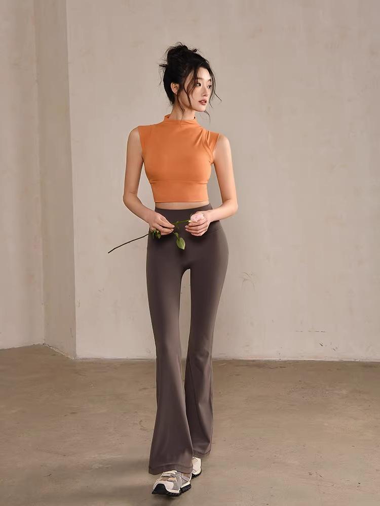 甜茶橙背心+卡其棕微喇瑜伽裤–S 建议体重85-100斤