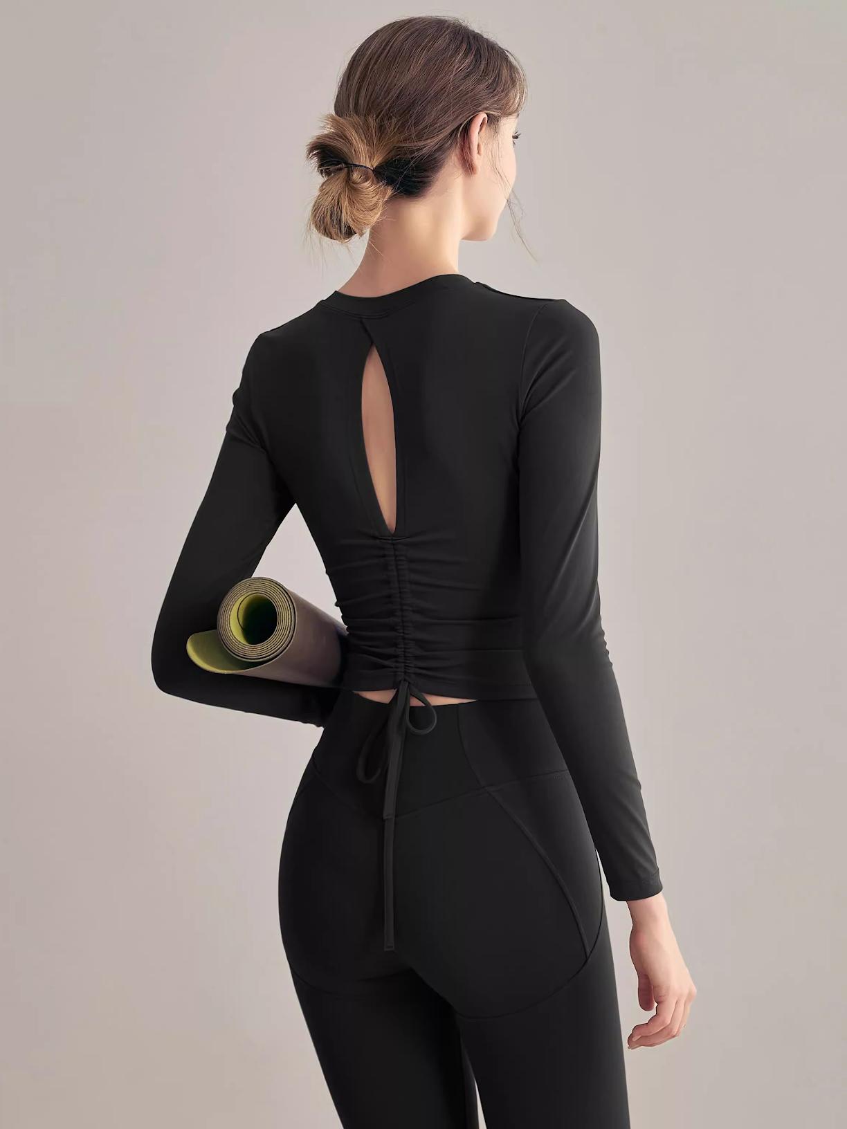 KAYANTY 요가복 상의, 아름다운 등을 위한 여성용 가슴 패드 포함 피트니스복 스포츠 긴팔 필라테스 트레이닝복 가을과 겨울