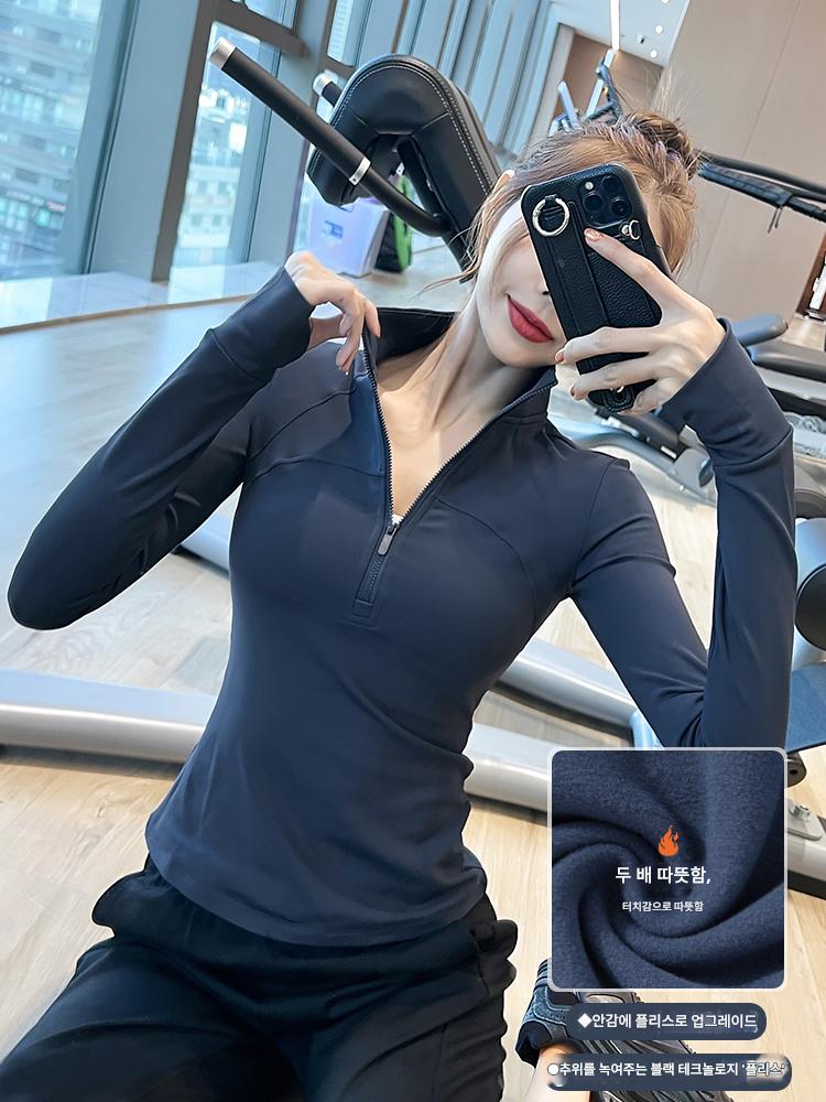 KAYANTY 요가복 여성용 하프 지퍼 러닝 스포츠 상의 신축성 트레이닝 피트니스복 긴팔 가을과 겨울 신제품