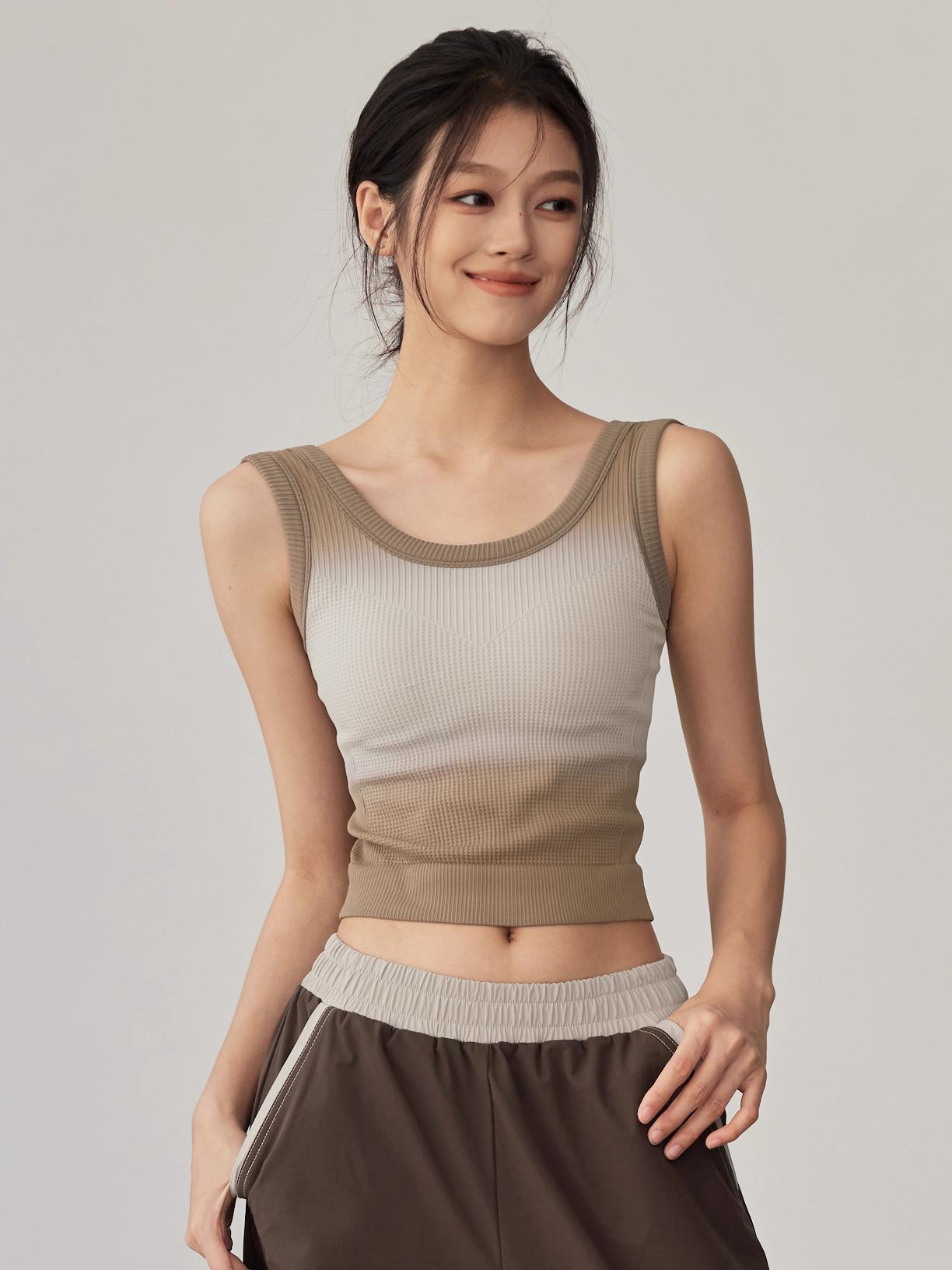 KAYANTY 필라테스 충격방지 트레이닝 속옷 가을 원피스 요가 조끼 러닝 슬리브리스 스포츠웨어 상의
