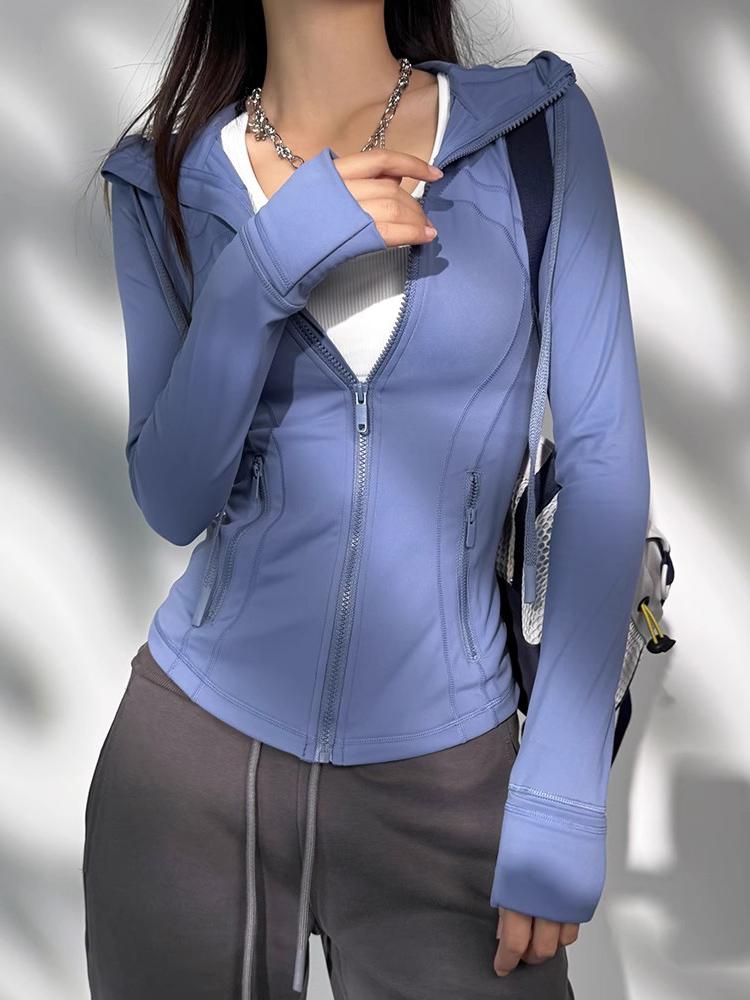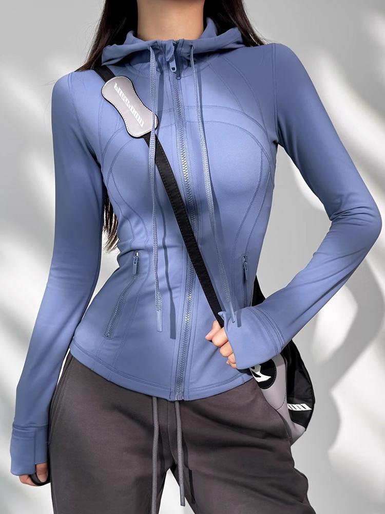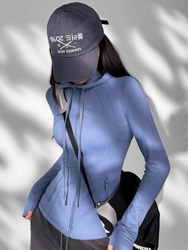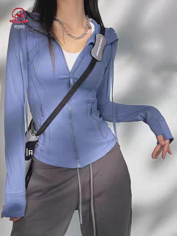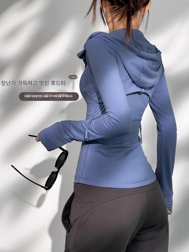 KAYANTY 후드 스포츠 재킷 여성용 러닝 피트니스 웨어 캐주얼 상의 통기성 탄력 요가 트레이닝 긴팔