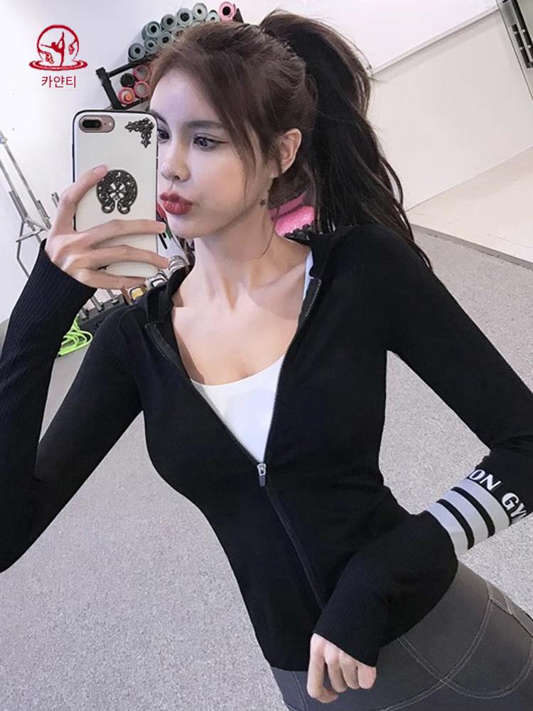 KAYANTY 후드 요가 피트니스 의류 러닝 트레이닝 상의 긴팔 탄력 타이트 스포츠 재킷 여성용 봄과 가을