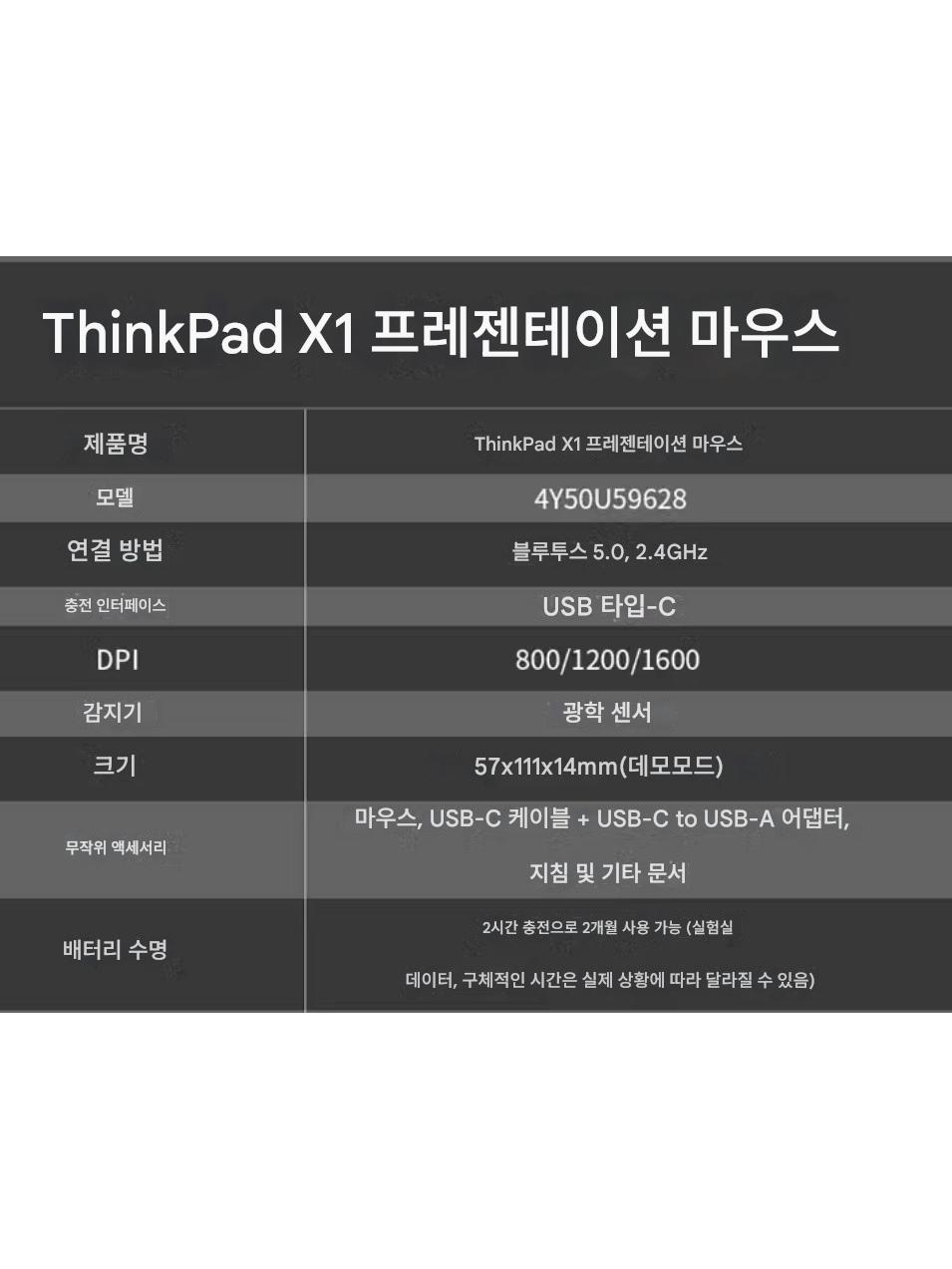 Lenovo ThinkPad X1 Bluetooth 무선 듀얼 모드 충전 프레젠테이션 마우스 레이저 4Y50U59628 터치 마우스