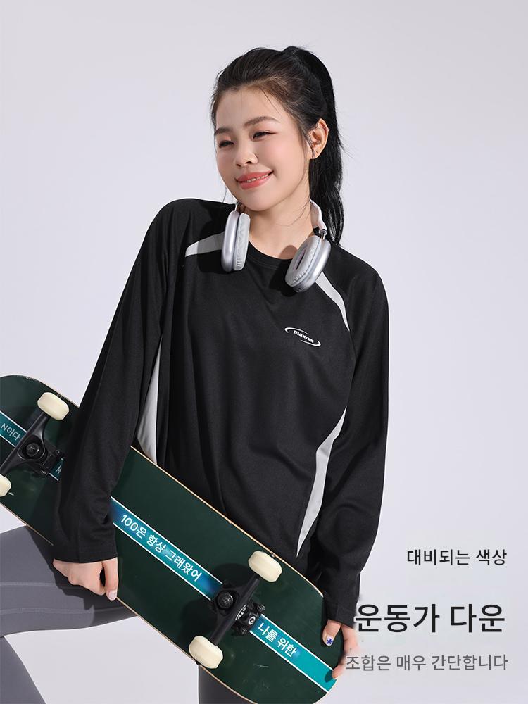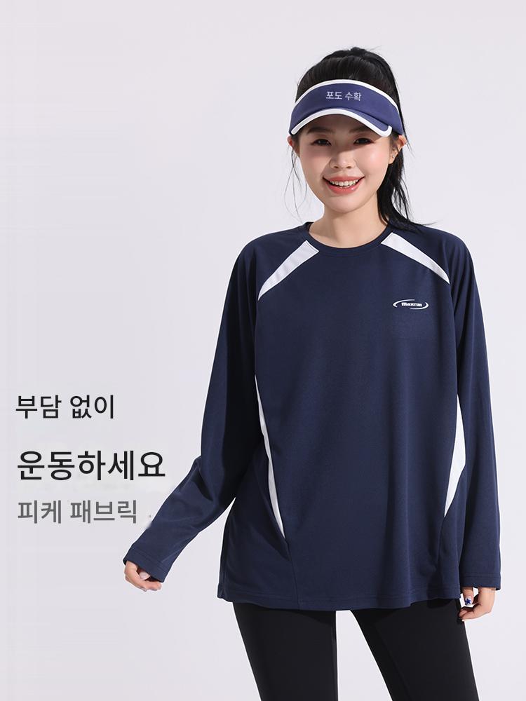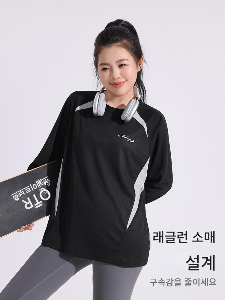 maxrun 콘트라스트 컬러 슬림 스포츠 티셔츠 여성용 긴팔 루즈 대형 사이즈 fat mm 속건성 러닝 피트니스 의류 상의