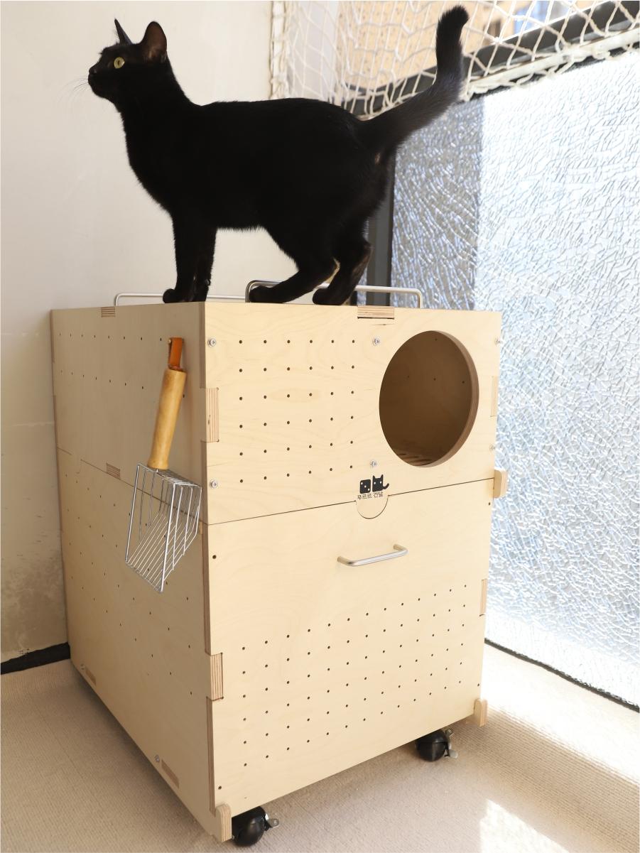 PurrKnave 대형 고양이용 변기 상자 맞춤형 상단 진입형 탈취제 반밀폐형 방수 2층 고양이 변기