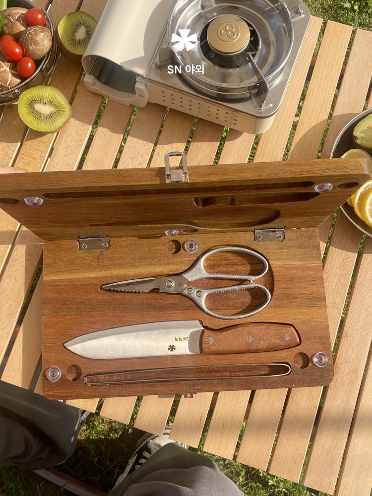 sn 아웃도어 캠핑 피크닉 올인원 아웃도어 나이프 세트 휴대용 접이식 도마 도마 주방용품 세트