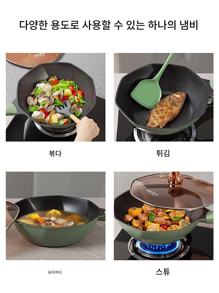 Supor 가벼운 팔각형 냄비 의료용 돌 노스틱 팬 평평한 바닥 프라이팬 가정용 냄비 프라이팬 유도 조리기에 적합합니다.