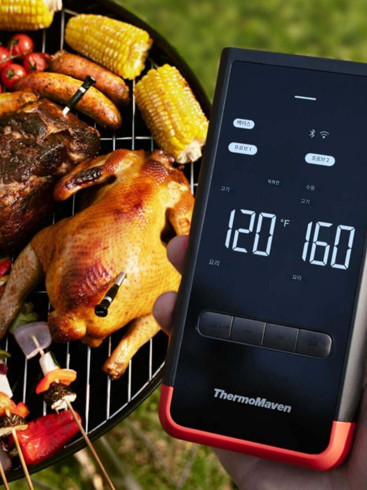 ThermoMaven P2 무선 바베큐 온도 프로브 키트 듀얼/쿼드 온도계 디스플레이 베이스 스테이션