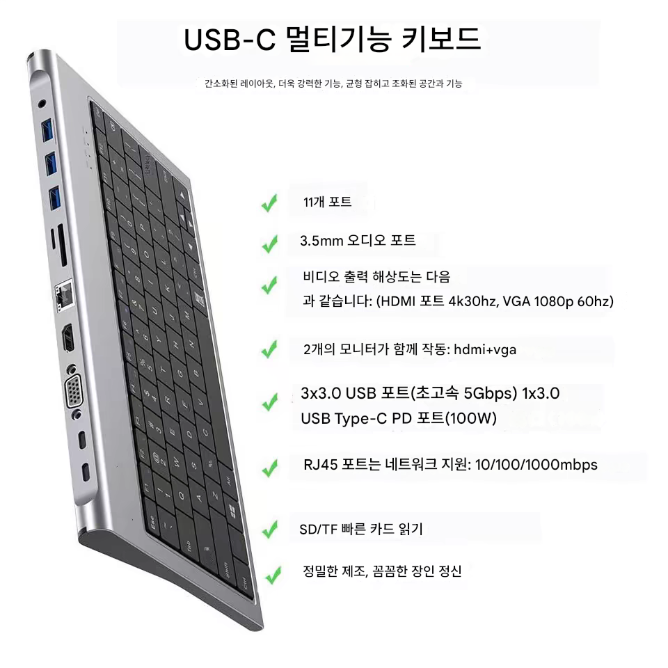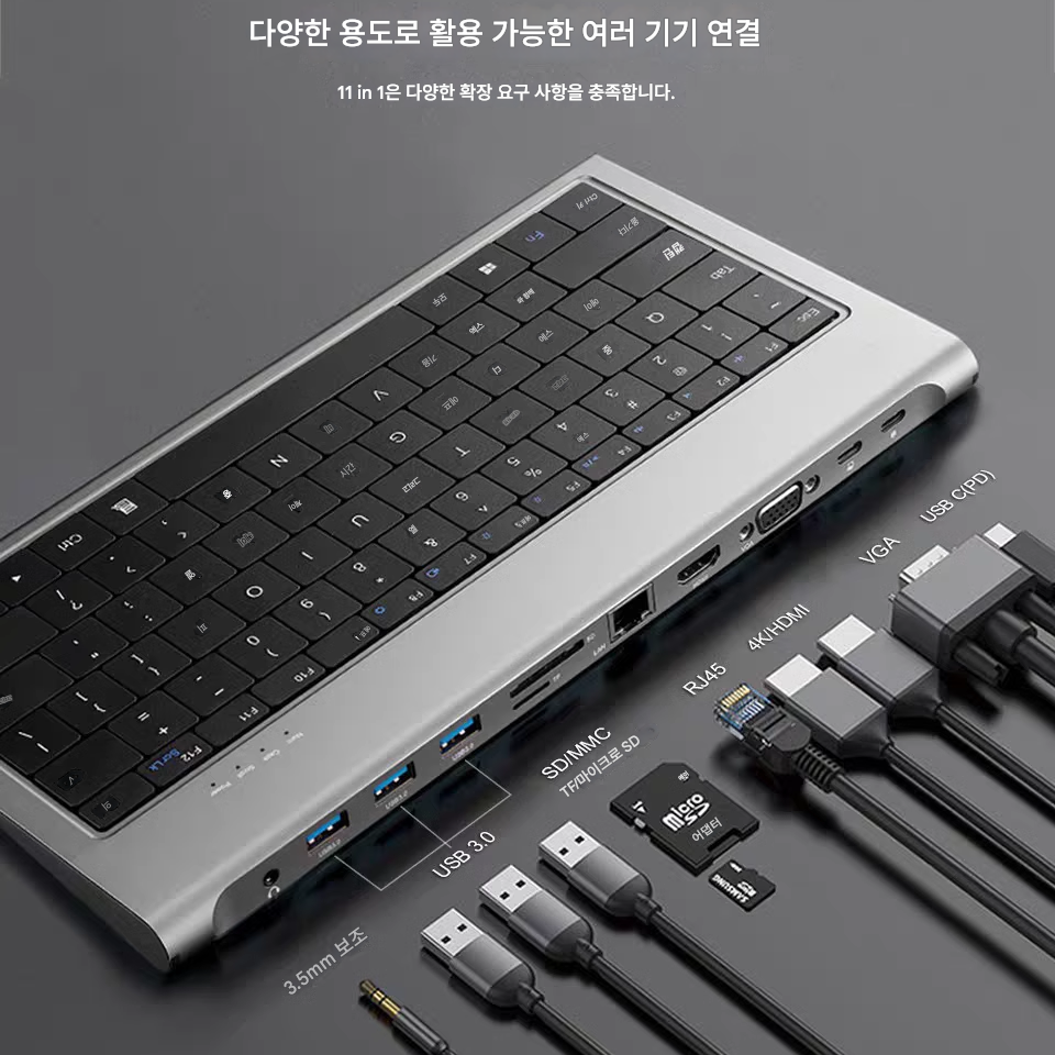 Typec 키보드 도킹 스테이션 11 in 1 노트북 및 태블릿용 다기능 HDMI 고속 컨버터
