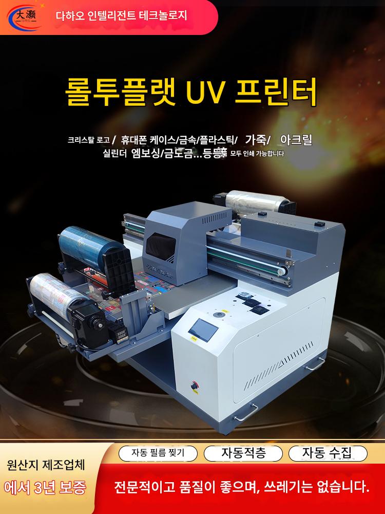 UV 프린터 소형 아크릴 유리 금속 휴대폰 케이스 인쇄기 전사 스티커 크리스탈 라벨 롤 플랫 올인원 기계