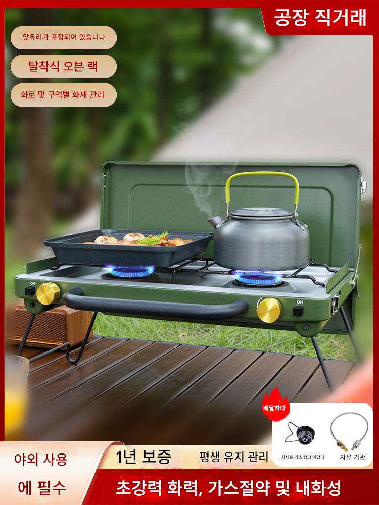 VOOMA 야외 휴대용 접이식 카드 더블 헤드 스토브 분할 가스 스토브 캠핑 피크닉 쿠커 강렬한 불 방풍