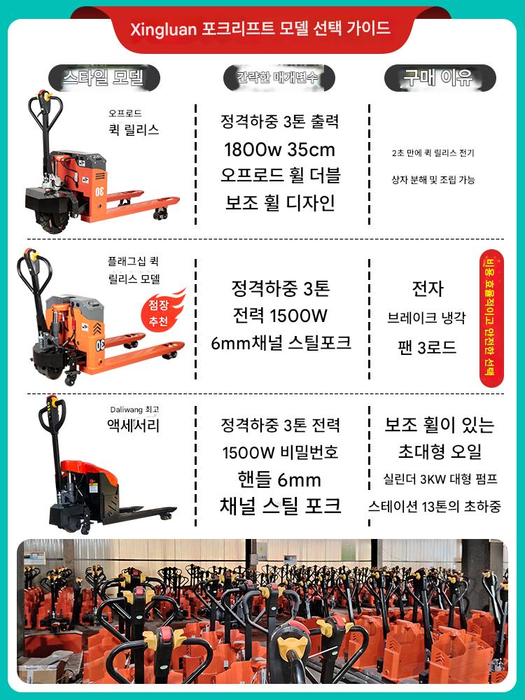 Xingluan 전기 포크리프트 3톤 풀 전기 포크리프트 2톤 반 전기 유압 적재 및 하역 트럭 팔레트 트럭 수송기